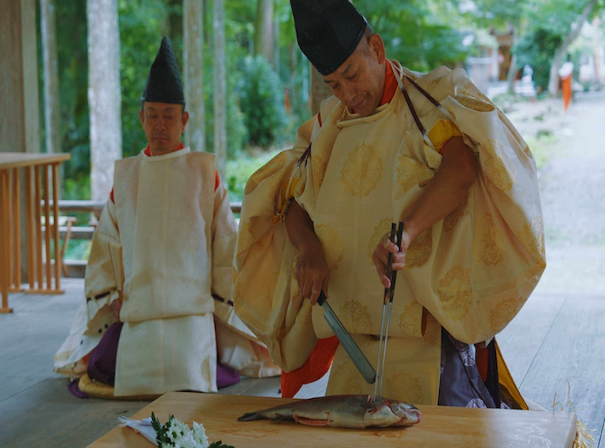 「庖丁道」家元による奉納儀式