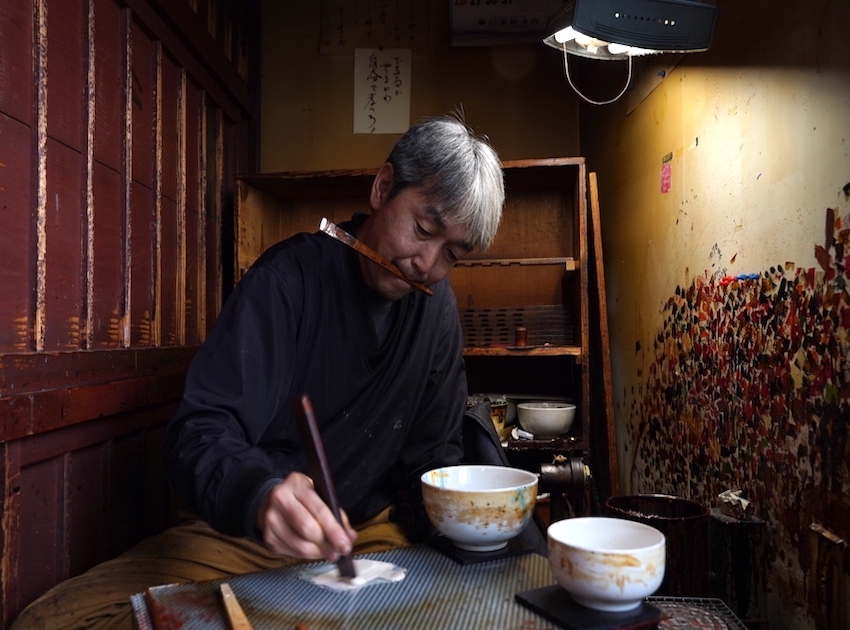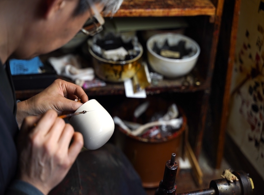 続いて塗りの工房へ。伝統的な漆塗りに加え、叢雲塗りを今に伝える希少な職人の仕事を見学します。一点一点と向き合う、緊張感ある現場の空気を感じる時間です。