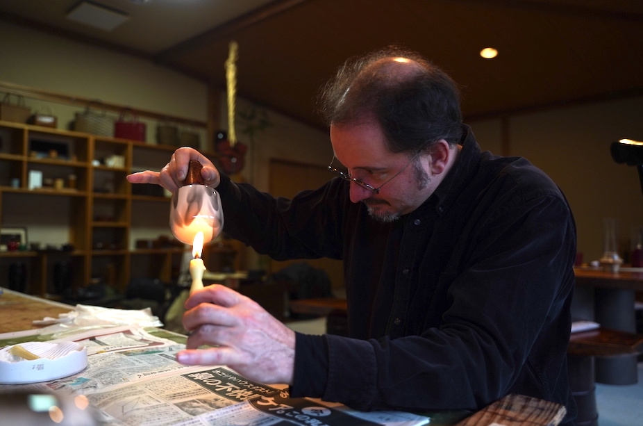続いて訪れるのは、職人が一点一点の器と向き合う塗りの工房。ここでは、和蝋燭の炎を近づけ、漆が硬化する前の表面に煤を纏わせて模様を生み出す伝統技法「叢雲塗り」を今に伝える職人に会うことができます。黒い雲が揺らめくような表情は、職人でさえ予測しきれない自然が生む美しさ。山中温泉に住む唯一の継承者による、極めて希少な技と向き合う現場を間近で体感します。