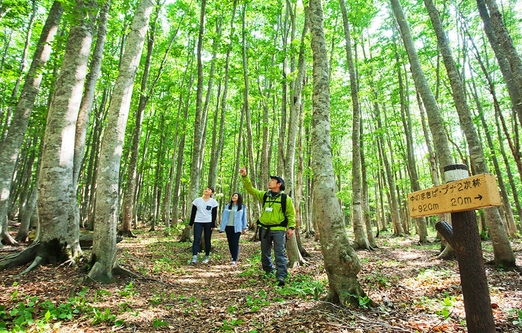 「日本の森林浴の森100選」に選定されている「ブナの二次林」で安比高原の今昔物語やブナの森の魅力を認定ガイドのご案内のもと散策いただきます。