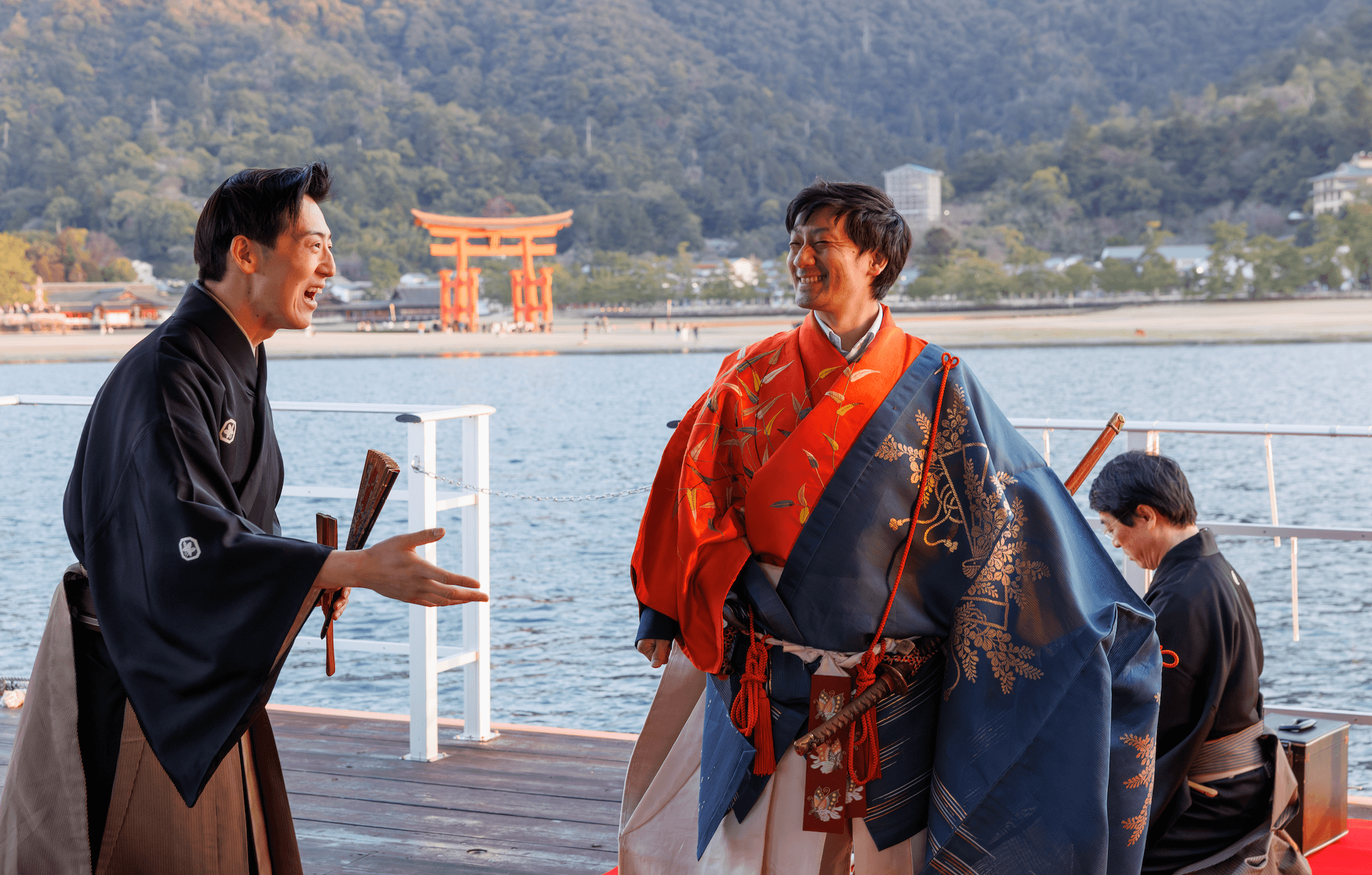 嚴島神社の大鳥居を眺めることが出来る特別な場所で著名能楽師によるプライベート能楽体験。