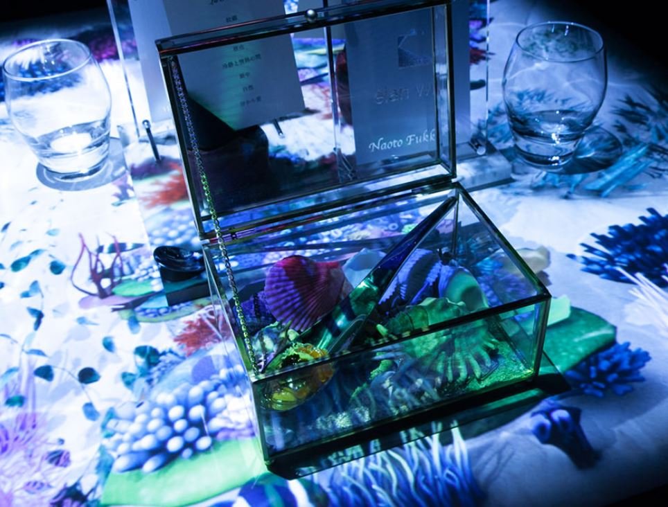 卓上を熱帯魚が泳ぎ、花びらが風に躍る、 深作直歳シェフ独自の世界観によって演出される料理は、次世代の5Dレストランとして人気を博しています。他店のシェフも数多く訪れる、分子ガストロノミー(科学実験のような手法)の料理は、「見て」「食べて」「触って」楽しめる食の全く新しい体験を御提供致します。